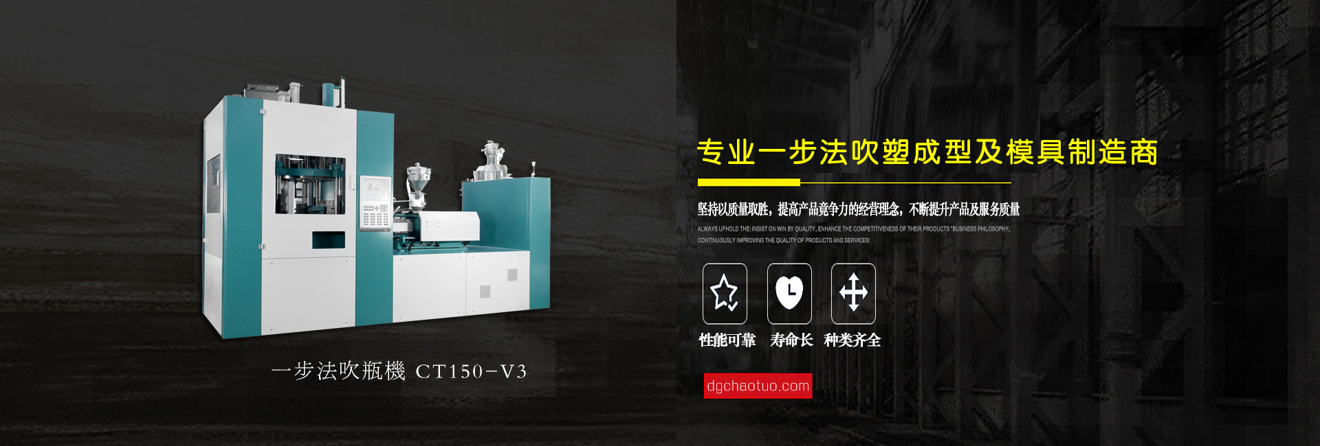 東莞超拓機械有限公司是一家專業(yè)設計生產(chǎn)一步法注吹機及相關(guān)配套模具的制造企業(yè), 公司自成立至今,始終以市場為導向、科技為基礎、質(zhì)量第一、用戶至上為服務宗旨,并一直在跟進和學習世界上先進的“注拉吹”中空成型技術(shù)專業(yè)領域配件制造和檢驗技術(shù),不斷地創(chuàng)新求異,其中PPSU奶瓶領先國內(nèi)同行業(yè),堅持“超越拓展,品質(zhì)保證”的企業(yè)文化理念,為客戶提供上乘服務。公司總經(jīng)理姜業(yè)東攜全體員工衷心感謝新老客戶的支持和關(guān)愛,竭誠歡迎各位朋友蒞臨指導與合作,共圖發(fā)展。